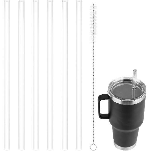 6pcs Replacement Straw for Yeti 42oz, Reble Plastic Drinking Straws with Long Straw Brush and Cleaner Compatible with Yeti Cups and Other 10.6in