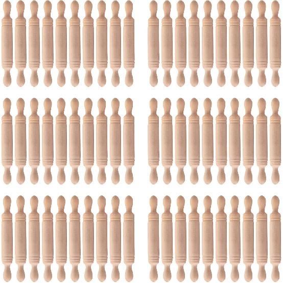 FUN 72pcs Mini Rolling P for Crafts Small Wooden Rolling P for Kids Wood Dough Roller Models for Baking Dollhouse Kichen Accessories - 1.96 Inch