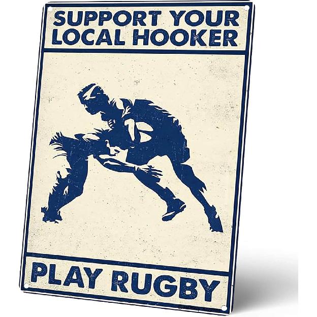Rugby Humor Metal Signs Vintage, Support Your Local Hooker Play Rugby, for Man Cave, Home, and Club Decor, Wall Art Poster Tin Signs for Men 8x12