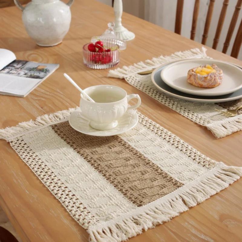4/6pcs Boho Placemats Fall Place Mats Macrame Table Decor Rustic Linen for Table Dining Wedding Table Decor