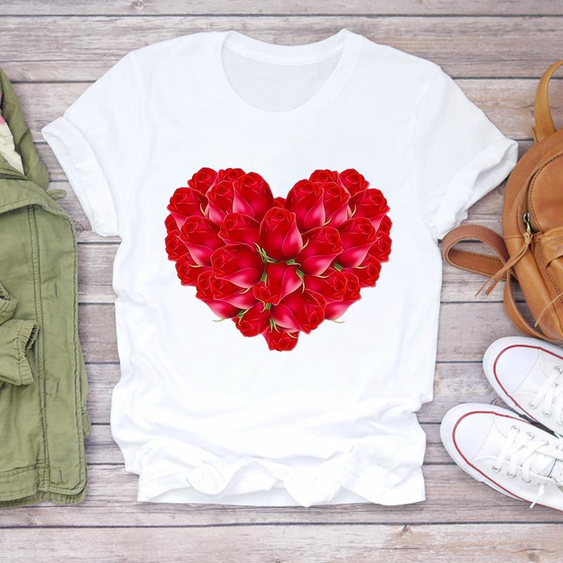 (Asian Size) lovely heart trend Graphic Short Sleeve T-shirts Lady Female Top Printed Fashion Clothing Women Casual T Shirt Tee