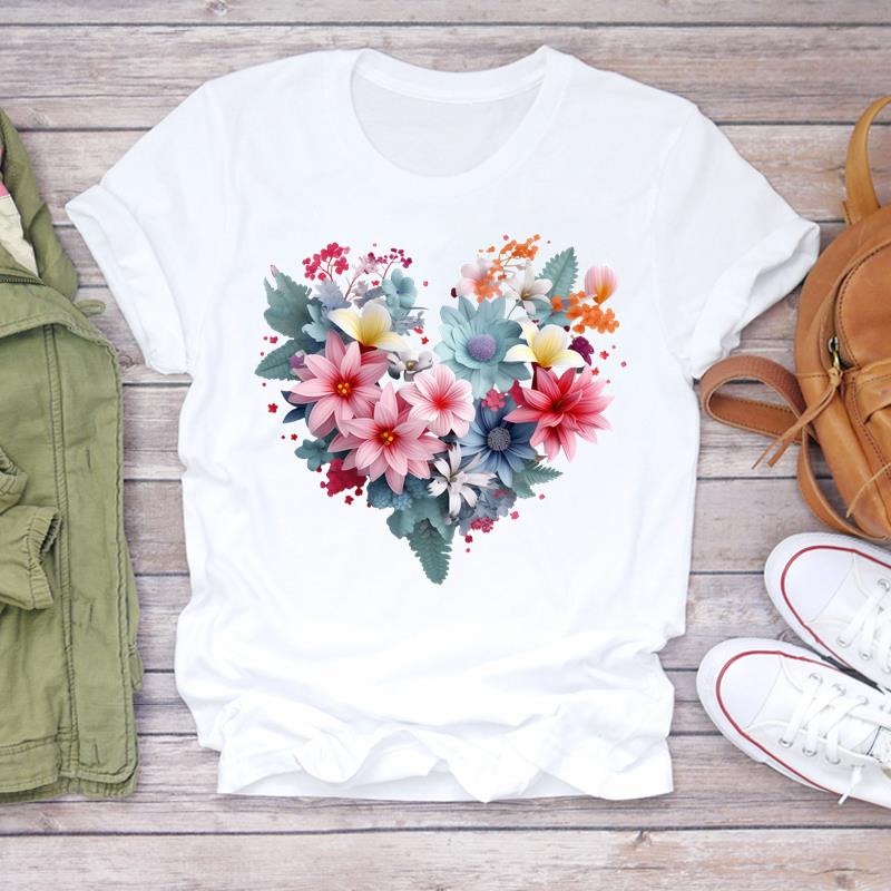 (Asian Size) trend love heart Graphic Short Sleeve T-shirts Lady Female Top Printed Fashion Clothing Women Casual T Shirt Tee
