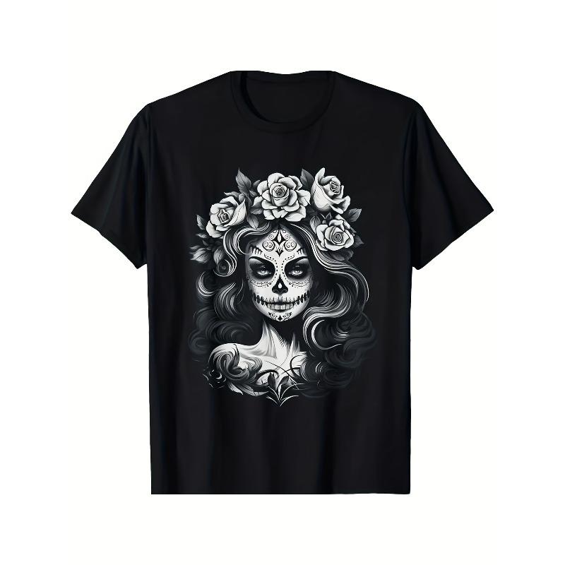 European sizes Men's Mexican Sugar Skull & Floral T-Shirt