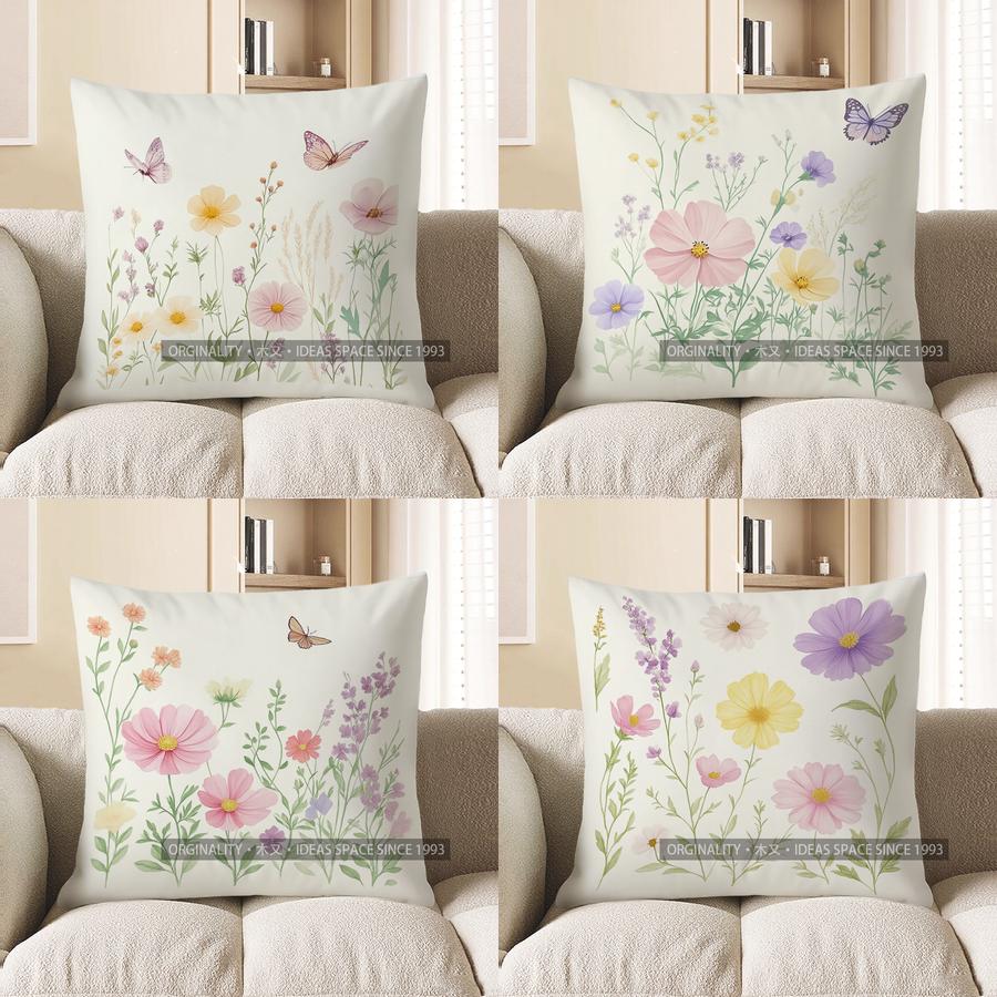 Home Decor Butterflies And Flowers Floral Pattern Pillow Pattern Cushion Cover Suitable For Sofa Bedroom Car Pillow Cover