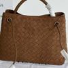 New women's bag frosted leather metal rope buckle leather woven niche simple large-capacity portable shoulder bag