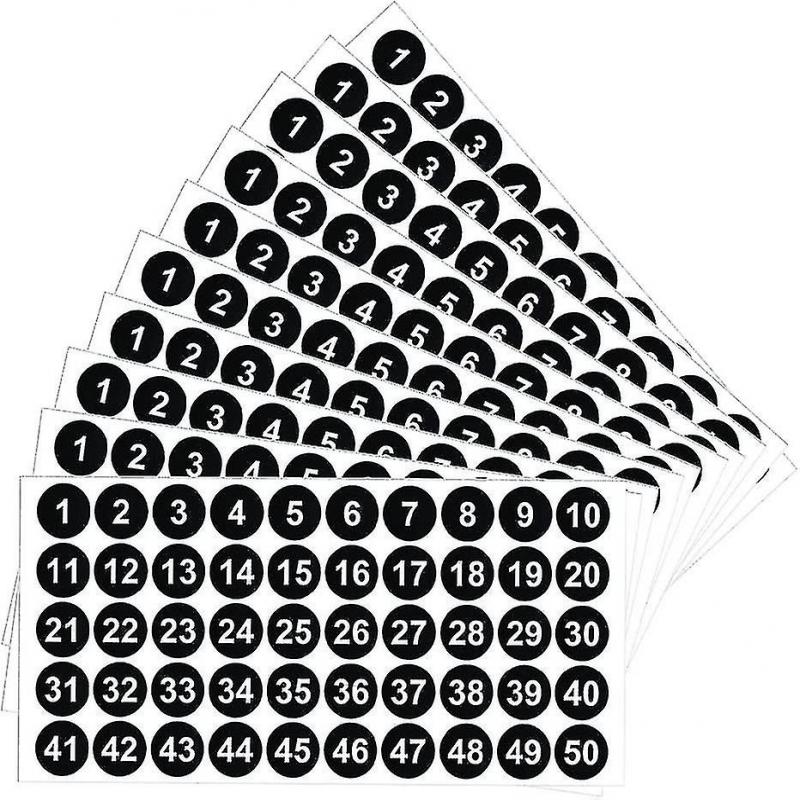 10 Sheets Number Stickers, 1 To 50 Number Self Adhesive Stickers, Sticky Round Number Labels, 1 Inch