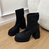Winter Platform Thick Heels Woman Modern Ankle Boots Round Toe Party Dress Shoes Female Vintage Stretch Slim Short Booties