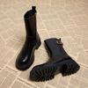 Women Fashion High Top Leather Boots Outdoors Platform British Short Boots Zipper Non-slip Retro Women Chelsea Boot Botas Mujer