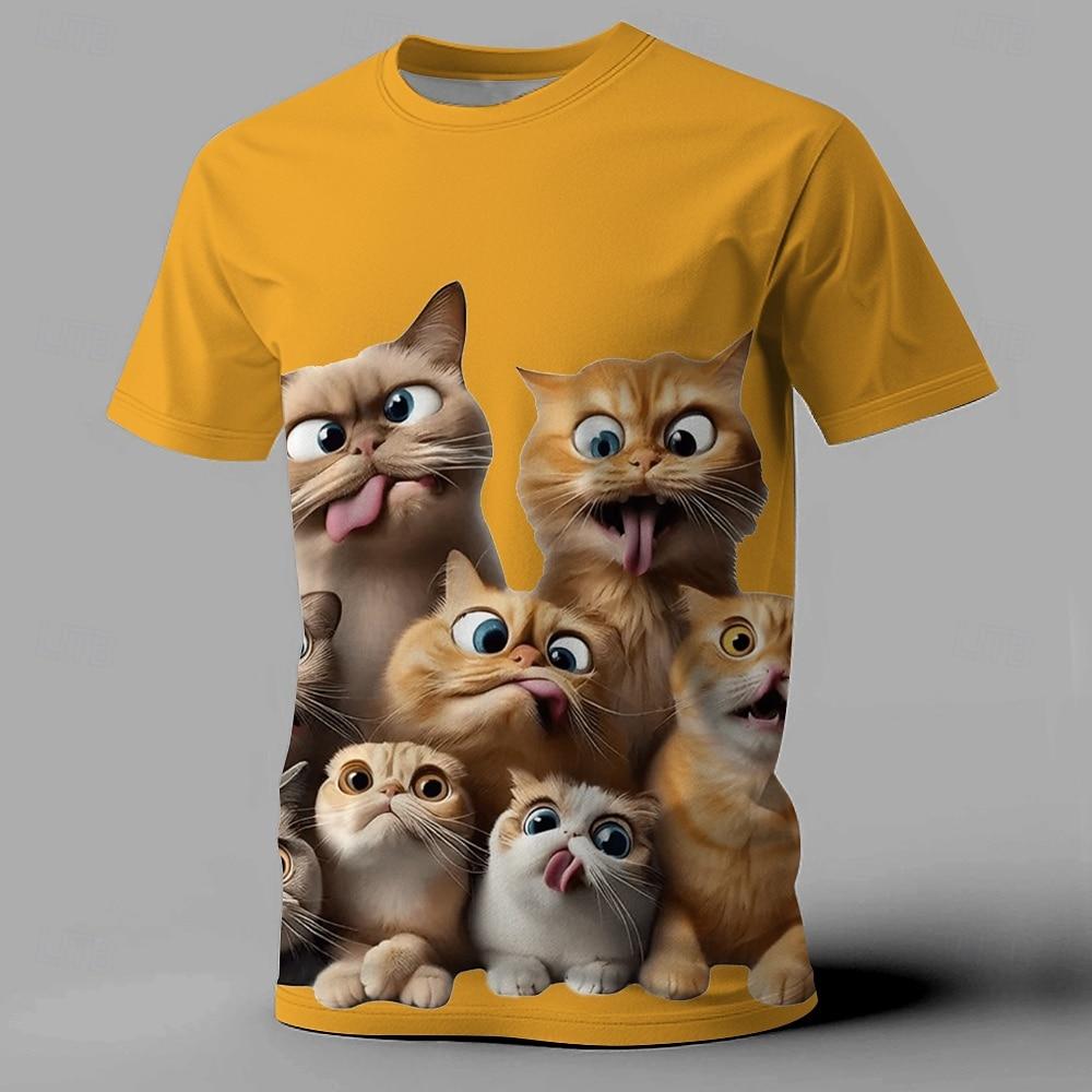 Men's White Eyed Cat Print T-Shirt Men's T-Shirt,3D Printing, O-neck ,Short Sleeve,Casual,Lightweight Top,sport Wear ,casual ,Large Size,Fashion