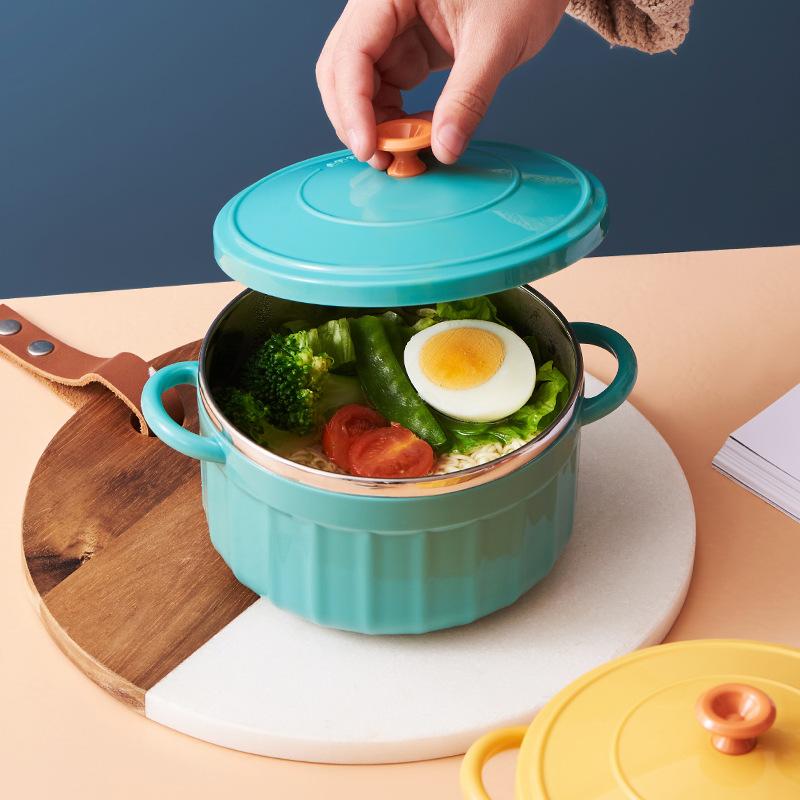 Nerezová miska s víčkem a lžičkou, dvojitá izolace, velkokapacitní miska na ramen polévku, nudle, ovocný salát, sada kuchyňských nástrojů