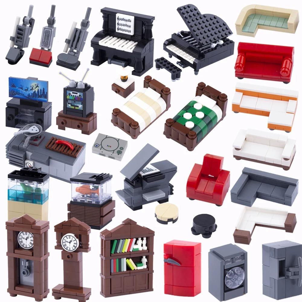 MOC Město Dům Stavebnice Kuchyně Kancelář Ložnice Piano Postel Pohovka Lednice Lampa Knihovna Akvárium Sada Kostek Hračky