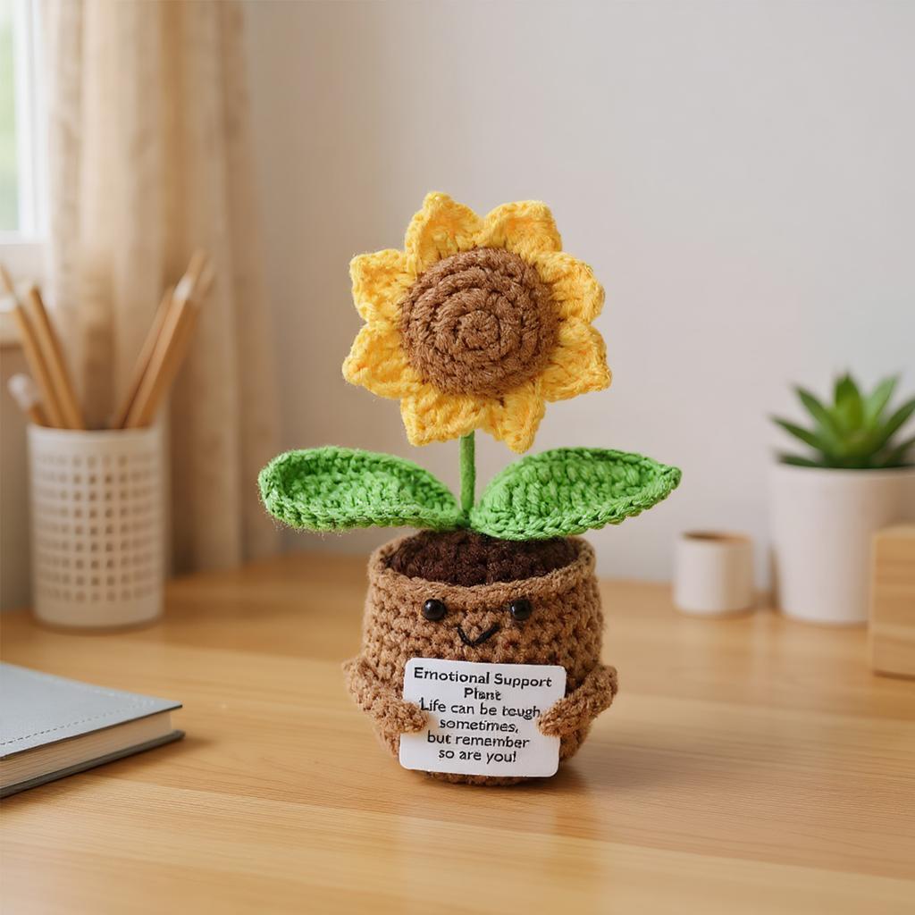 Knitted Decor Emotional Support Crochet Doll with Card Crochet Potted Tabletop for Women Mom Family Friend Teacher