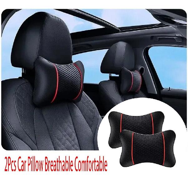 2Pcs Pu Leather Knitted Car Pillows Headrest Neck Rest Cushion Support Universal
