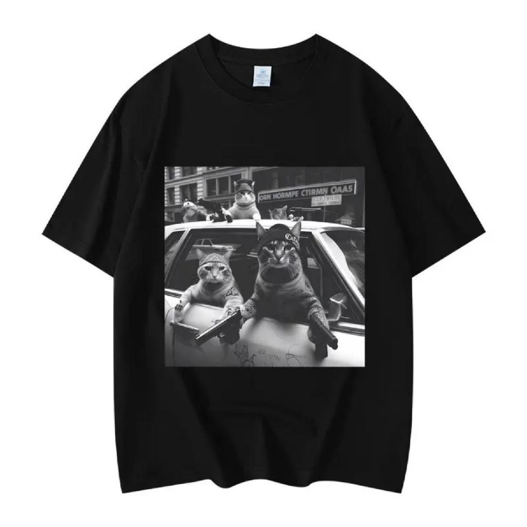 Vtipné grafické tričko s memem Kočičí gang Pánské Dámské Módní Vintage Tričko s krátkým rukávem Vysoce kvalitní bavlna Nadměrná trička