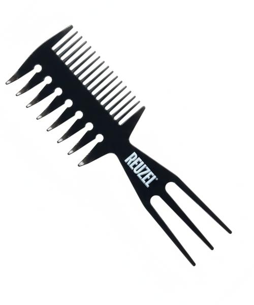 REUZEL Multi Pomade Comb (Model: REUCOMB3) is optimized for even application of pomade. Made from durable plastic material resistant to pomade's oil components, this comb is conveniently pocket-sized for on-the-go use. It is considered an essential item for pomade styling by many users.