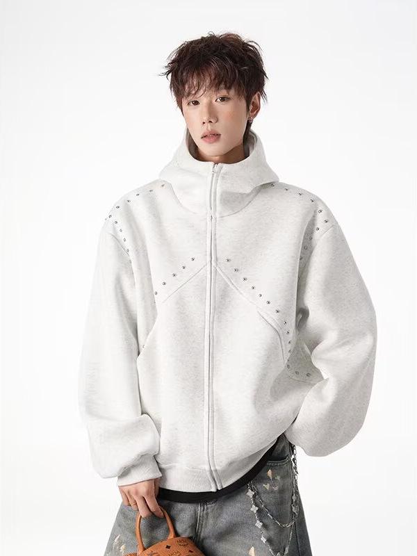 Elevate your streetwear style with this trendy retro hooded cardigan. Designed with a loose fit and long sleeves, it offers a comfortable yet fashionable look. Made from high-quality polyester material, the cardigan is thin, making it perfect for layering. The solid pattern and riveted details add a unique edge, while the hood provides both functionality and style. The faux fur lining, crafted from polyester fiber, adds an extra touch of warmth and comfort. Perfect for those who love combining casual and edgy elements in their wardrobe.