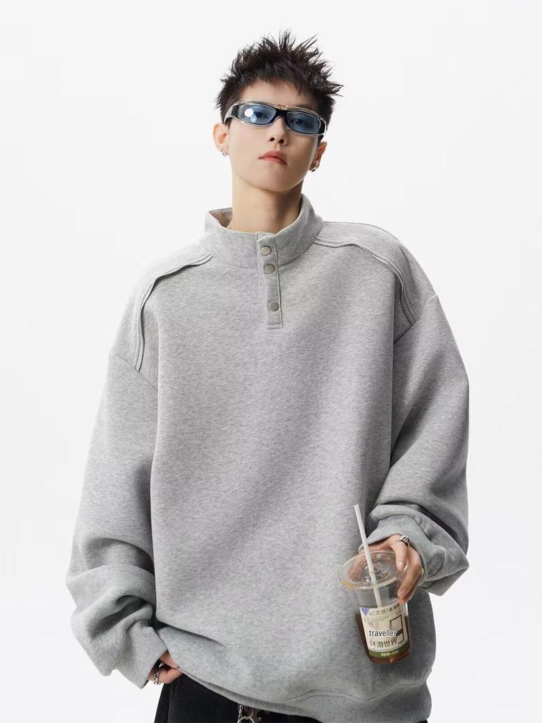 Men's Loose-Fit Streetwear Hoodie: High-End Patchwork Stand-Up Collar, Spring/Autumn Casual Jacket