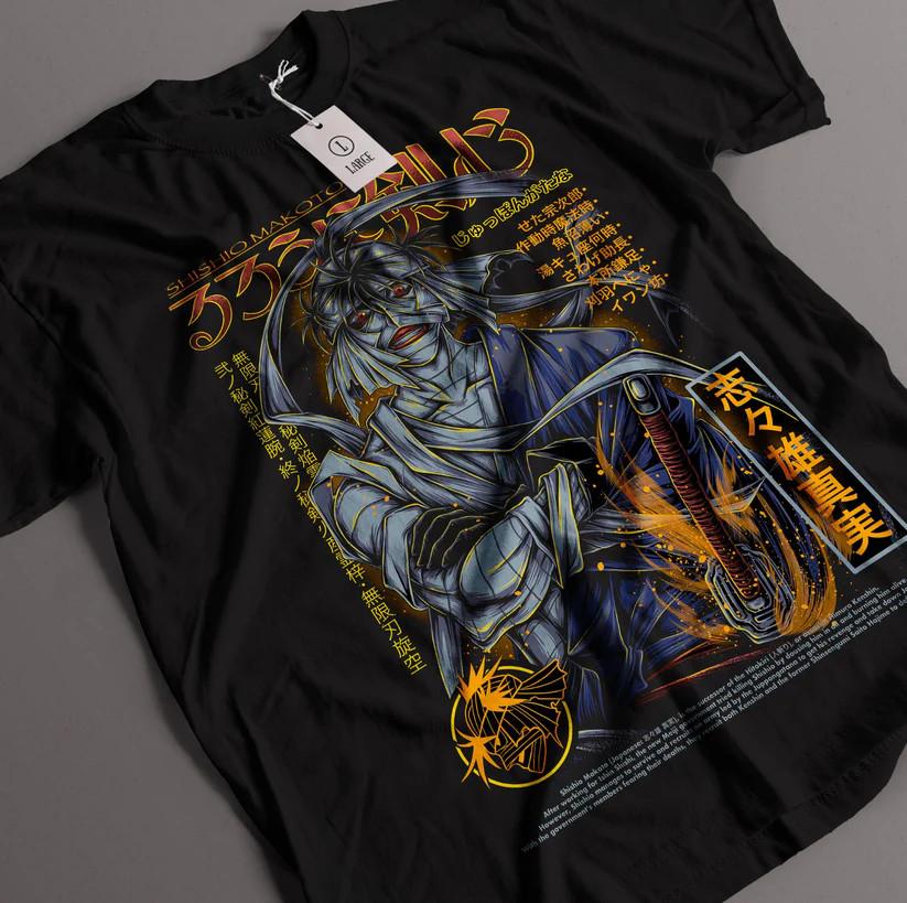 Anime Rurouni Kenshin Shishio Makoto Black T Shirt Size S - 5XL Unisex T-Shirt