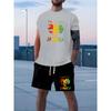 Fashion Colorful Love Graphic T-shirt Shorts Set Summer Sports Short Sleeve Shorts 2-piece Set Men's Quick Dry Sportswear Suit