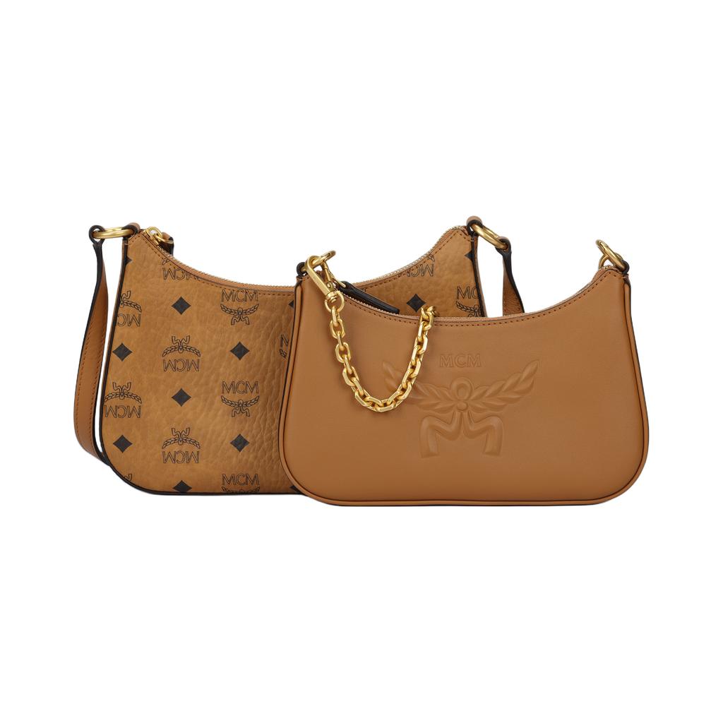 MCM Aren Visetos Two-In-One Logo Embossed Detachable Chain Zipper Crossbody Shoulder Bag Small Women bags Cognac Brandy MWHFSTA03CO001