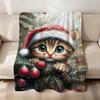 Cute fashion winter Christmas cat art Flannel soft warm plush blanket sofa living room pet hogar bedroom gift home Car portable