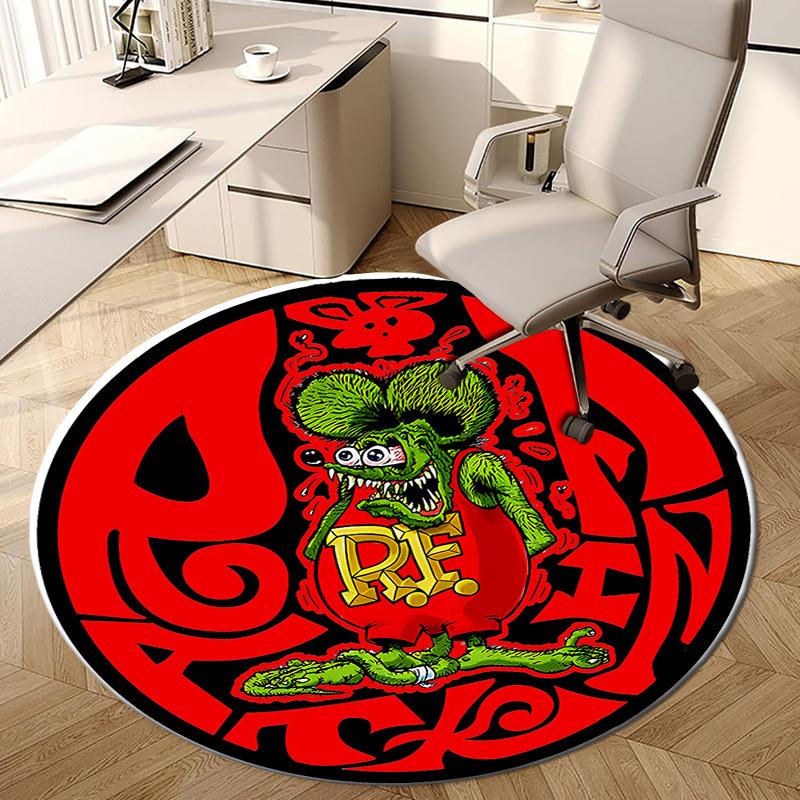 1pc Rat Fink Artwork Round carpet, Made of Polyester,Perfect for Decorating Office Chairs, Living Rooms