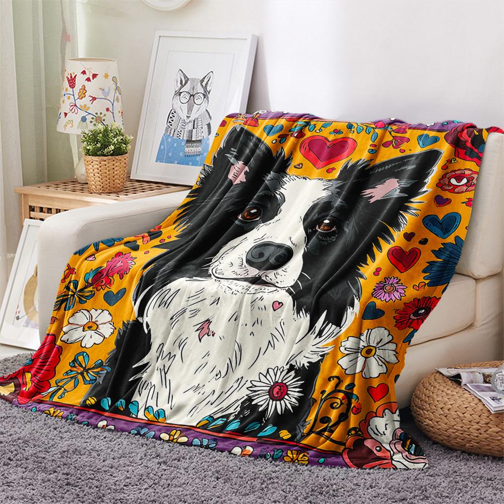 Border Collie Print Flannel Blanket, High quality Comfortable for All Seasons, Home Decor, Warmth and Comfort, Perfect for Christmas Gifts