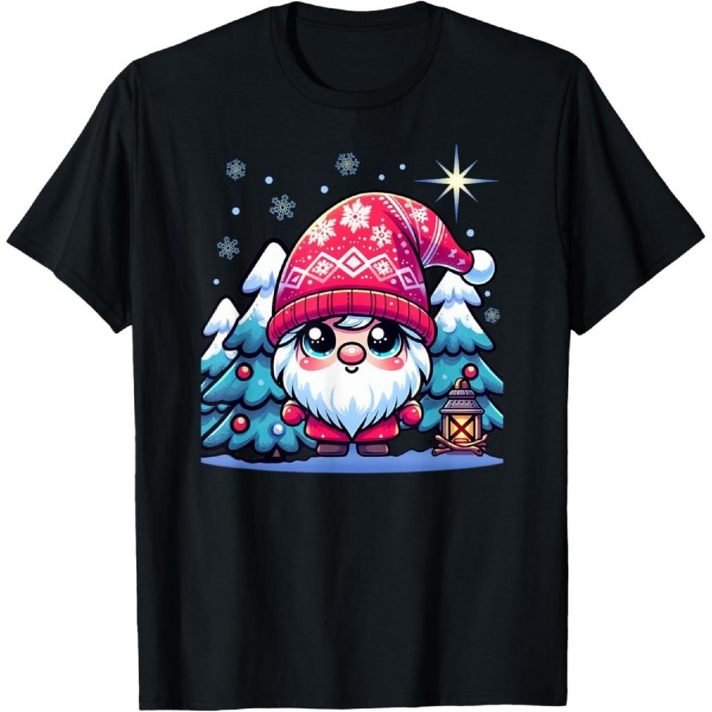 Cute Kawaii Gnome Winter Holiday Snowy Night Wonderland Fun T-Shirt