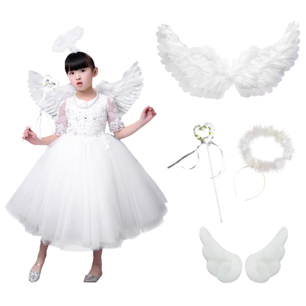 Joyasslly Angel Wings Cosplay Set for Angel Heart Wing and Hair Cute Angel Costume Accessories for Halloween and Unisex Kids, Wings, Ring, Stick,