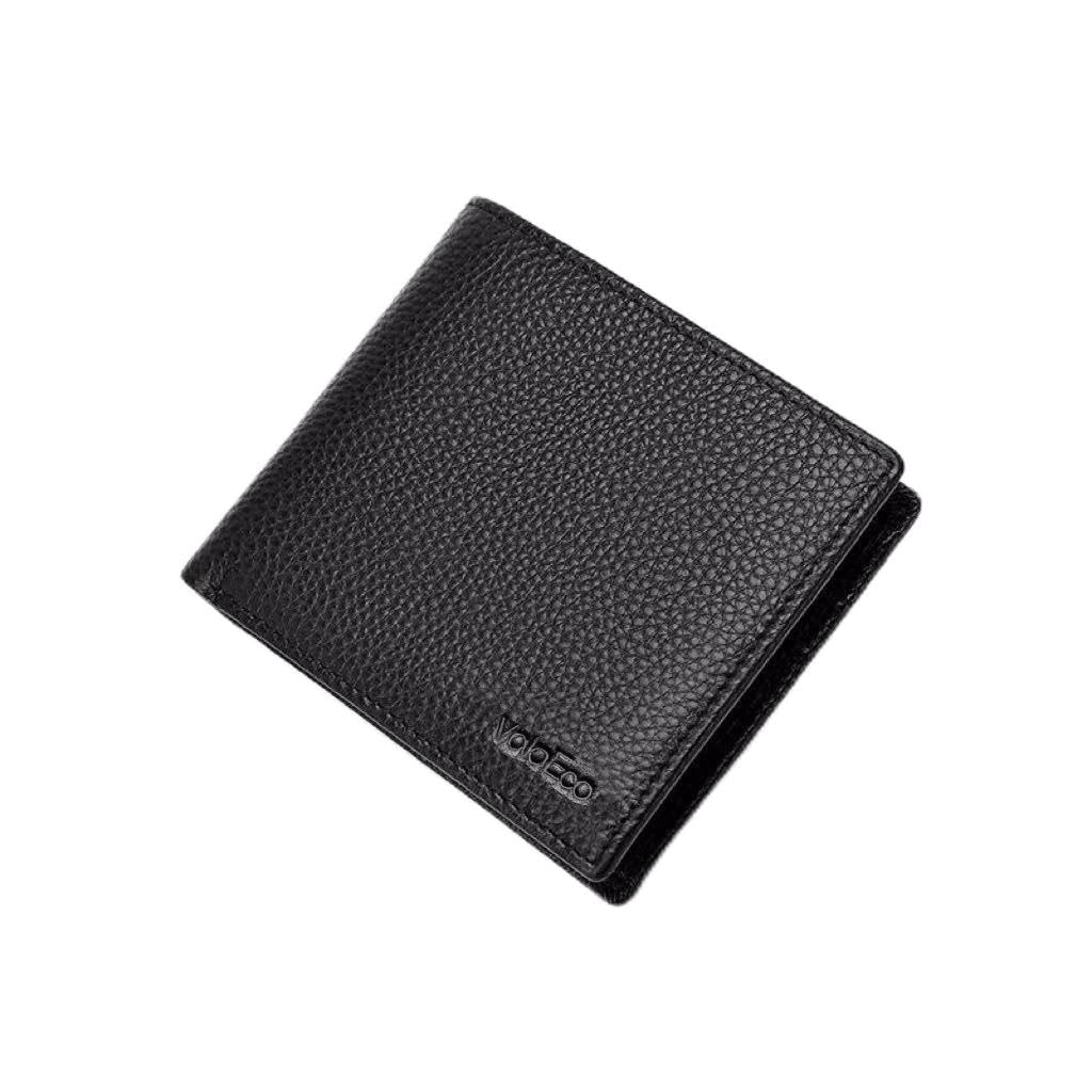 VoloEco Bifold Lightweight Genuine Holds 6 Hidden Zipper Pocket Men's Wallet, Leather, Cards, (Black)