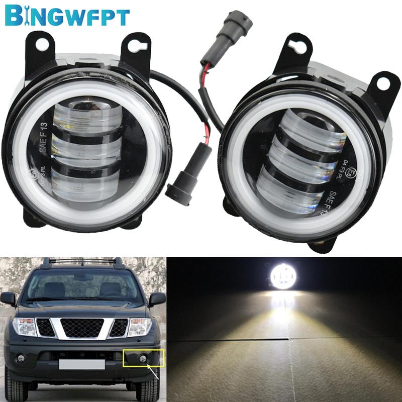 2PCS For Nissan Navara D40 2004-2015 For Nissan Leaf 2011-2015 LED 12V Fog Lights Angel Eye Fog Lamp Assembly DRL
