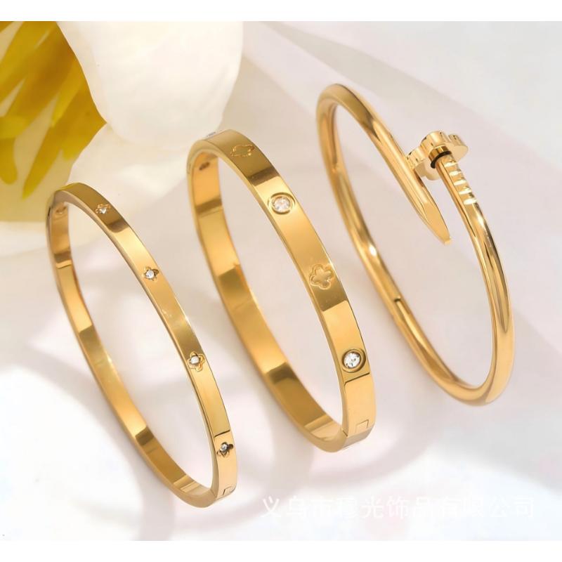 Light Luxury Four-leaf Clover Color Bracelet Set, Nails, Bracelet, Gold Bangles