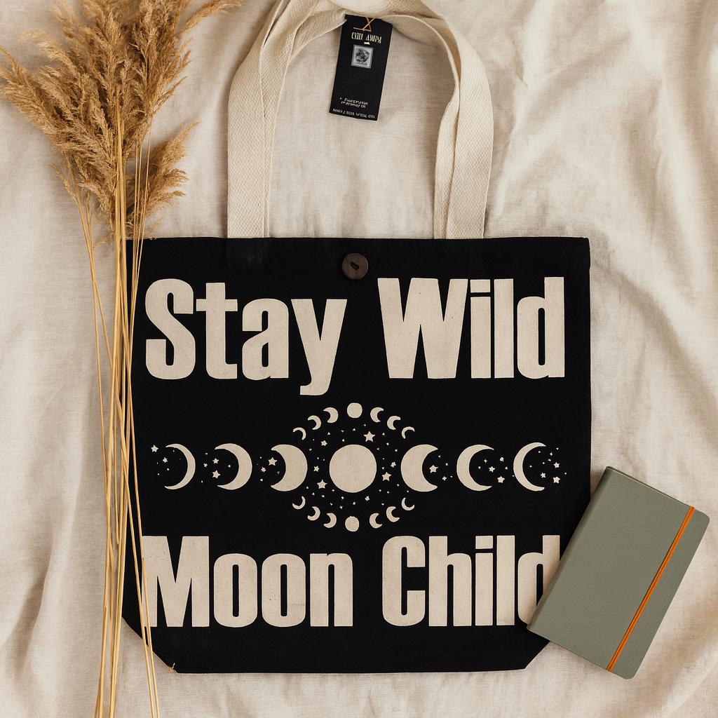 Tote Bag Stay Wild Mood Child Black-Natural 10oz