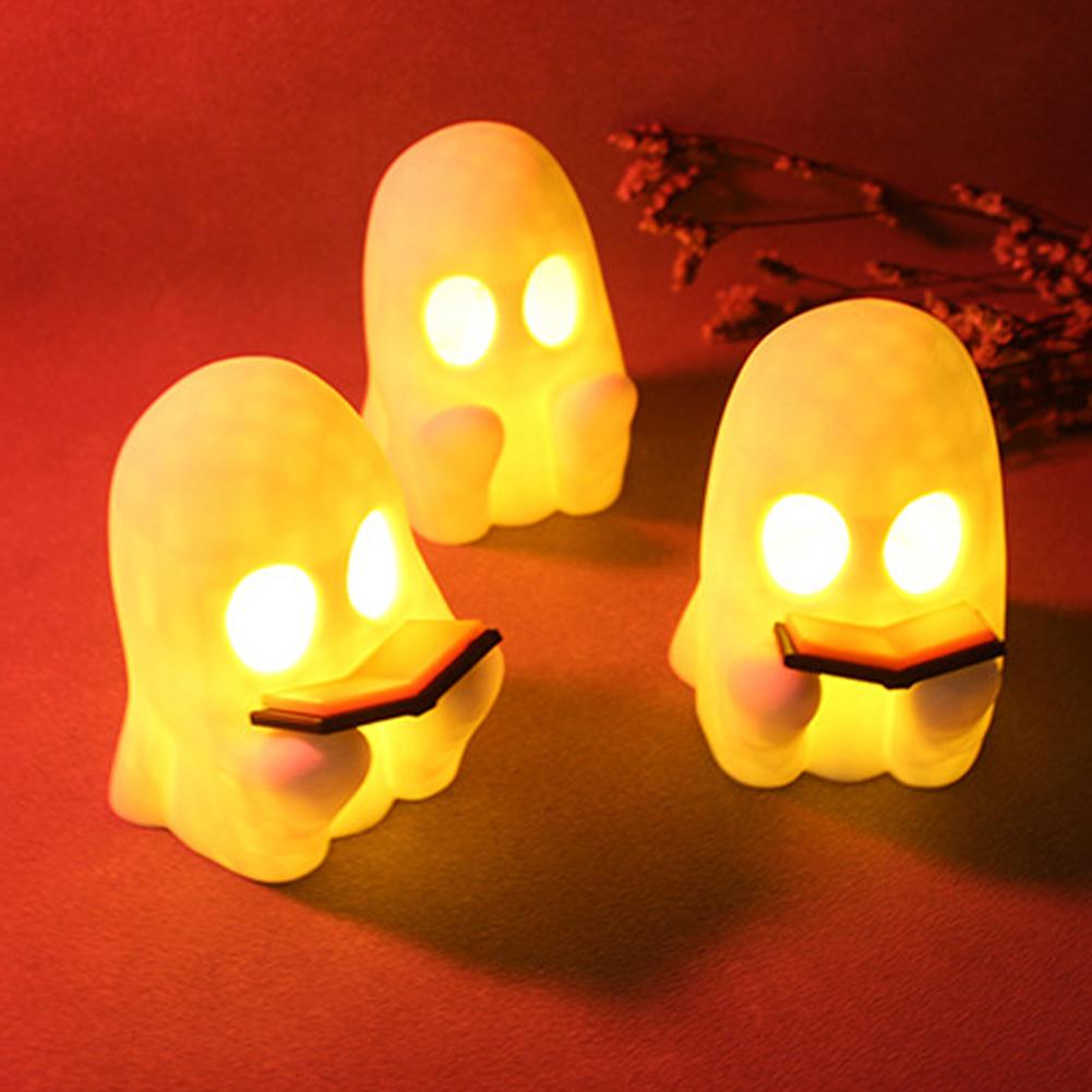 Halloween Ghost Decor Cute LED Resin Ghost Figurine with Pumpkin Basket Glow in Dark for Home Office Party Halloween Decoration