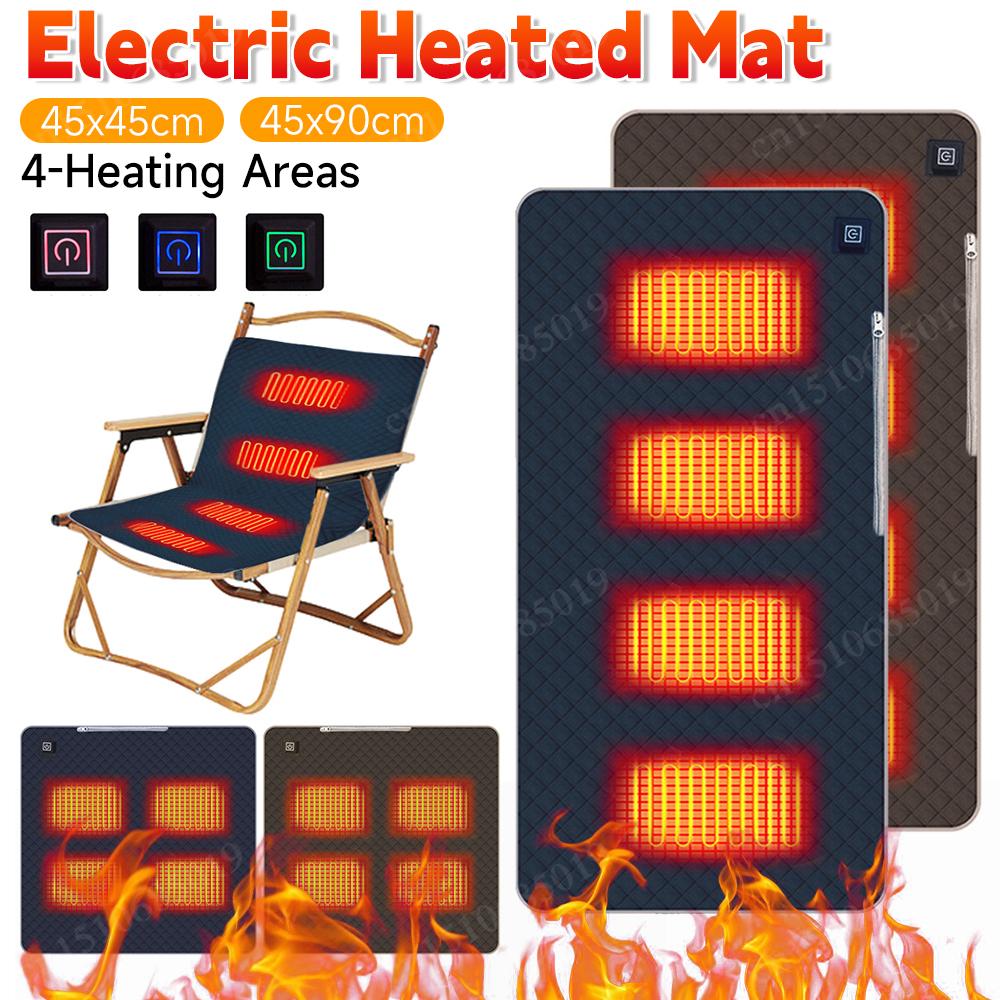 4 Heated Areas Camping Chair Heated Cushion USB Electric Heating Pad Seat Cushion Winter Electric Heating Pad Seat Warmer Cover