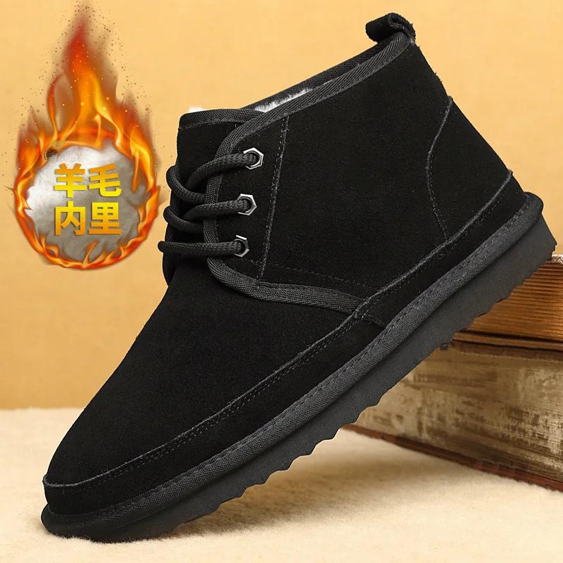 New Men Shoes Winter Snow Boots Genuine Suede Leather High Top Casual Shoes Warm Plush Ankle Boots