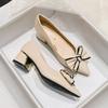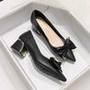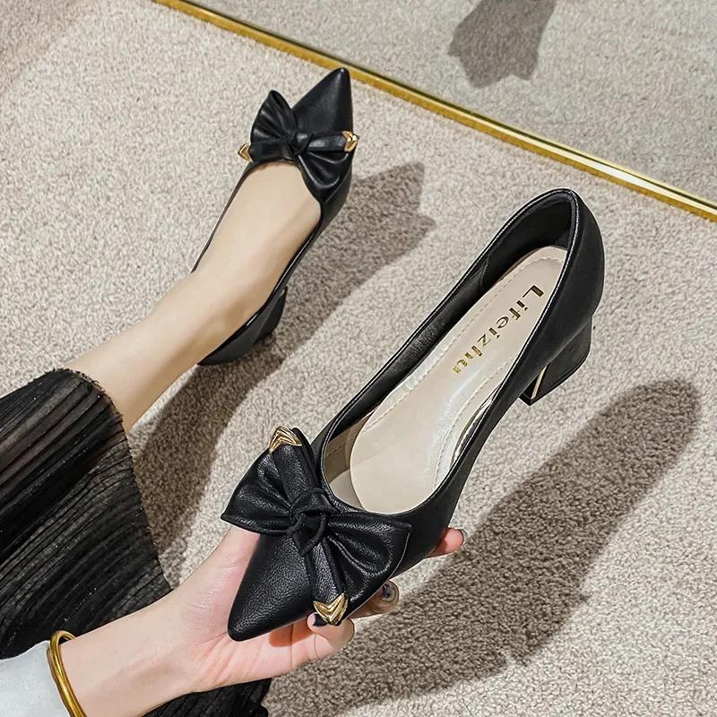 New Women Modern Pumps Spring Summer Girl Pointed Toe Casual Leather High Heels Shoes Fashion Bowknot Wedding Shoes