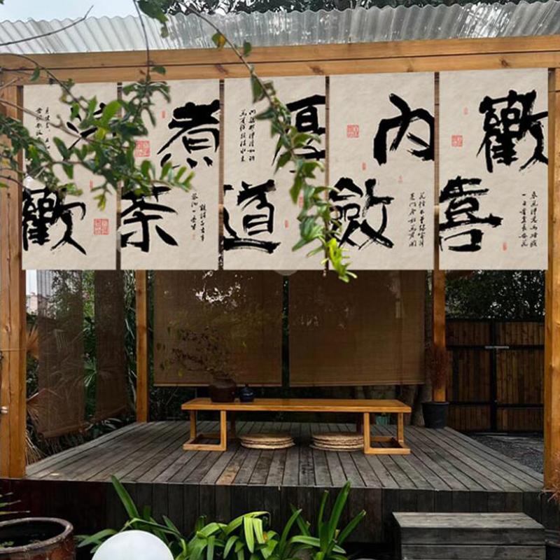 Chinese Style Hanging Half Curtain Stove-boiled Tea Culture Curtain Kitchen Partition Tea Room Noren Restaurant Coffee Drapes