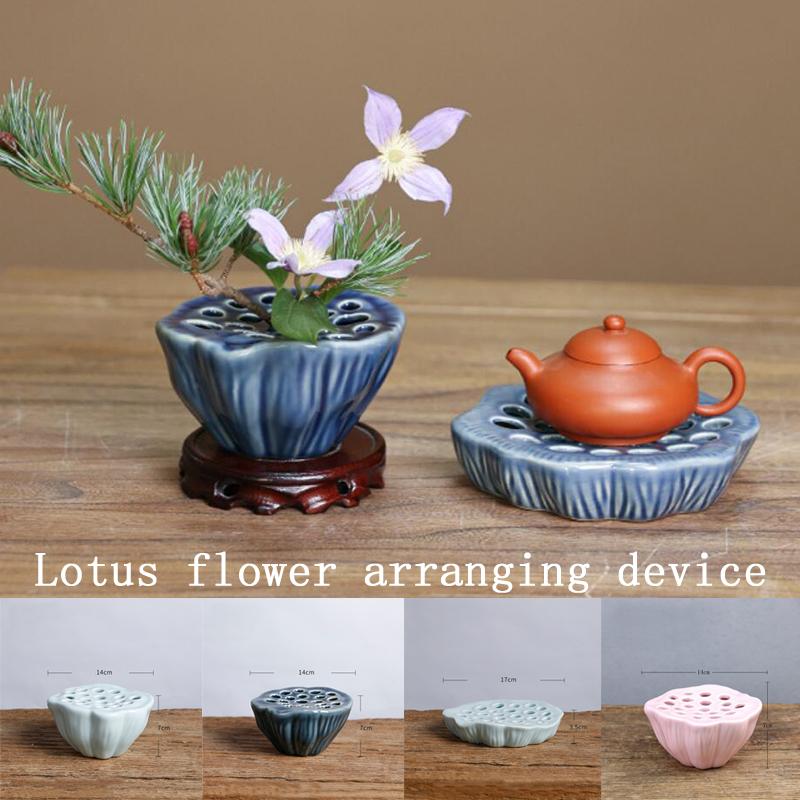 Japanese Style Ikebana Holder Ceramic Lotus Shape Ikebana Flower Arrangement Vase Tea Table Zen Kenzan Flower Art Fixed Tool