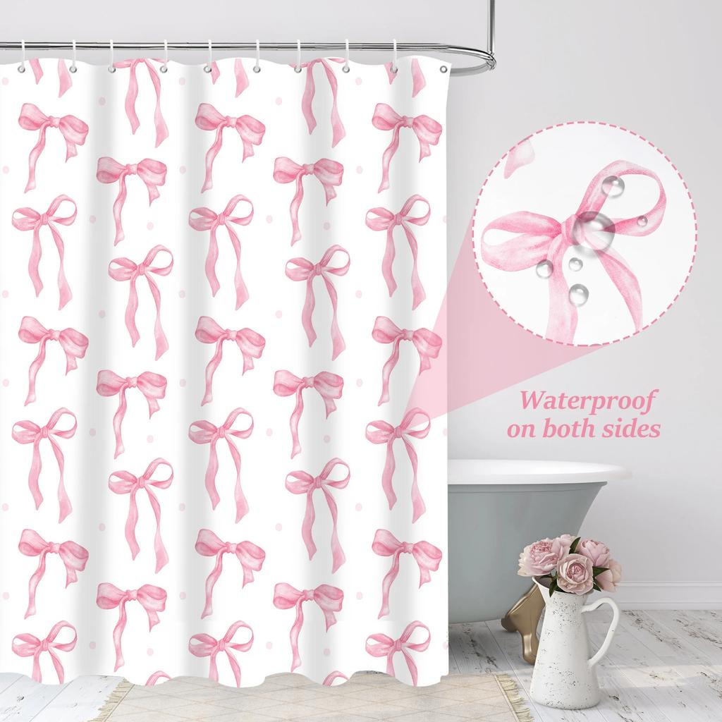 Hot Bow Pattern Shower Curtain Cute Bathing Cat Shower Curtain Waterproof Polyester Fabric Washable Bathroom Decor Accessories