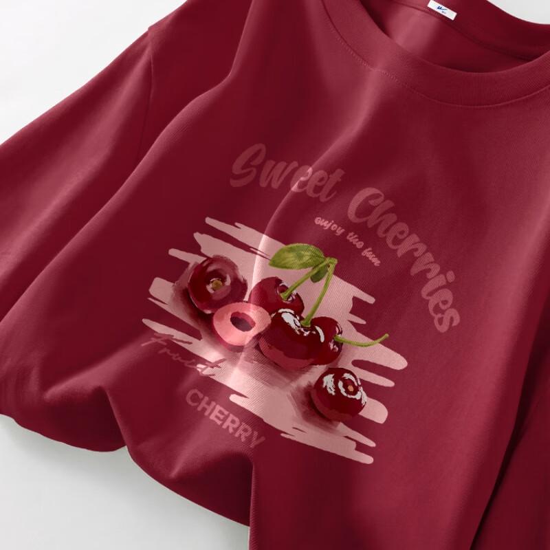 Huili Women's Dopamine Red Brush Cherry Print T-Shirt