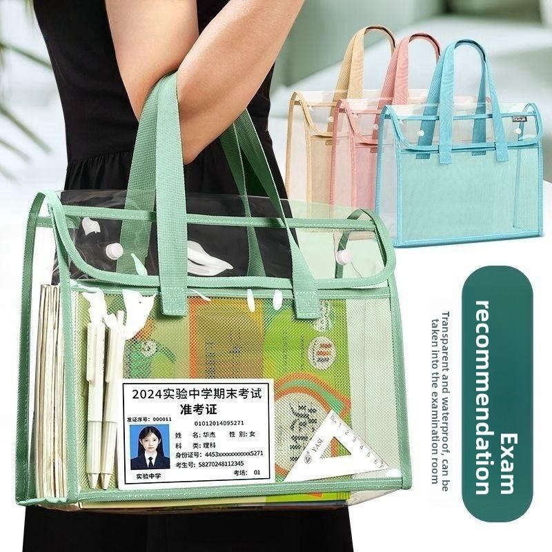 Thick Handled Document Folder Transparent Waterproof Durable Student Tutoring Paper Homework Book Storage Bag Organizer Pouch