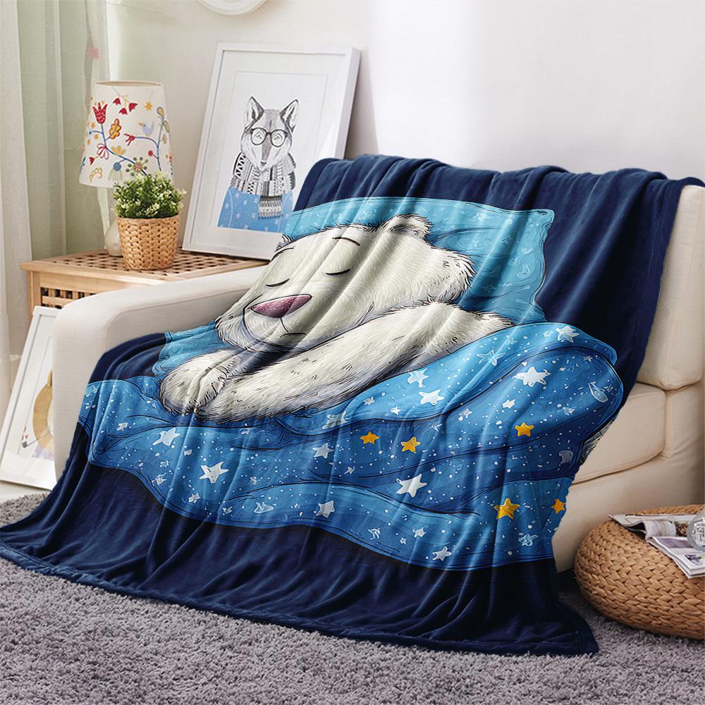 Polar Bear Print Flannel Blanket, High quality Comfortable for All Seasons, Home Decor, Warmth and Comfort, Perfect for Christmas Gifts