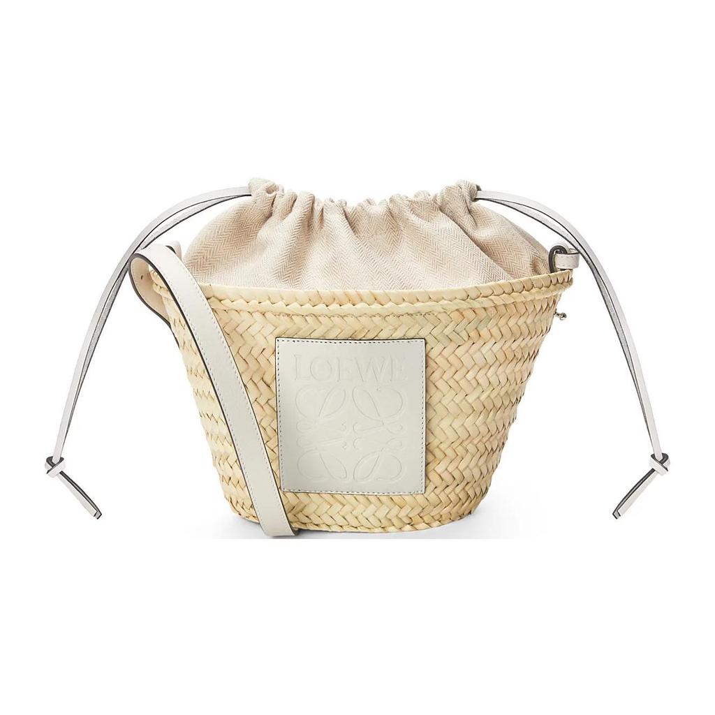 Loewe Embossed Patch Adjustable Shoulder Strap Drawstring Closure Palm Leaf Patchwork Leather Bucket Bag Women Shoulder Bag A223222X01-2163