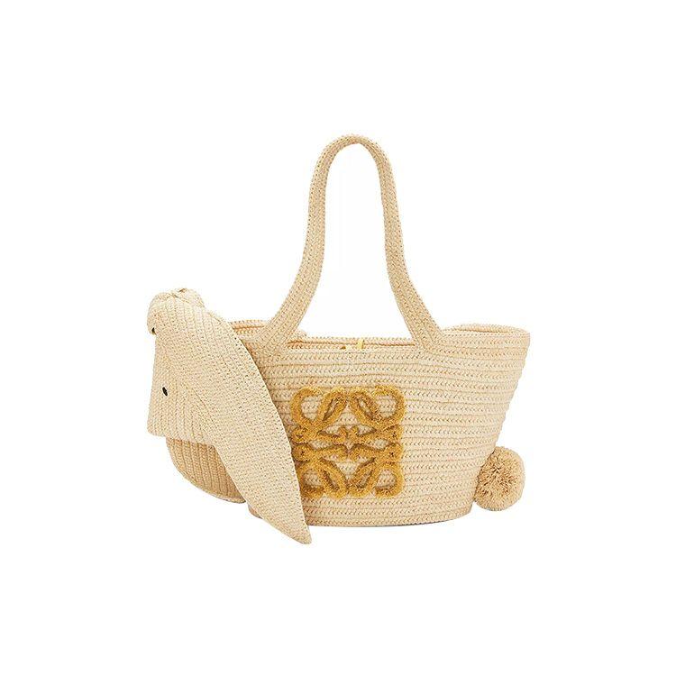 Loewe Logo Wine Palm Fiber And Cowhide Leather Tote Bag Small Women tote bag Natural A223S17X01-2123