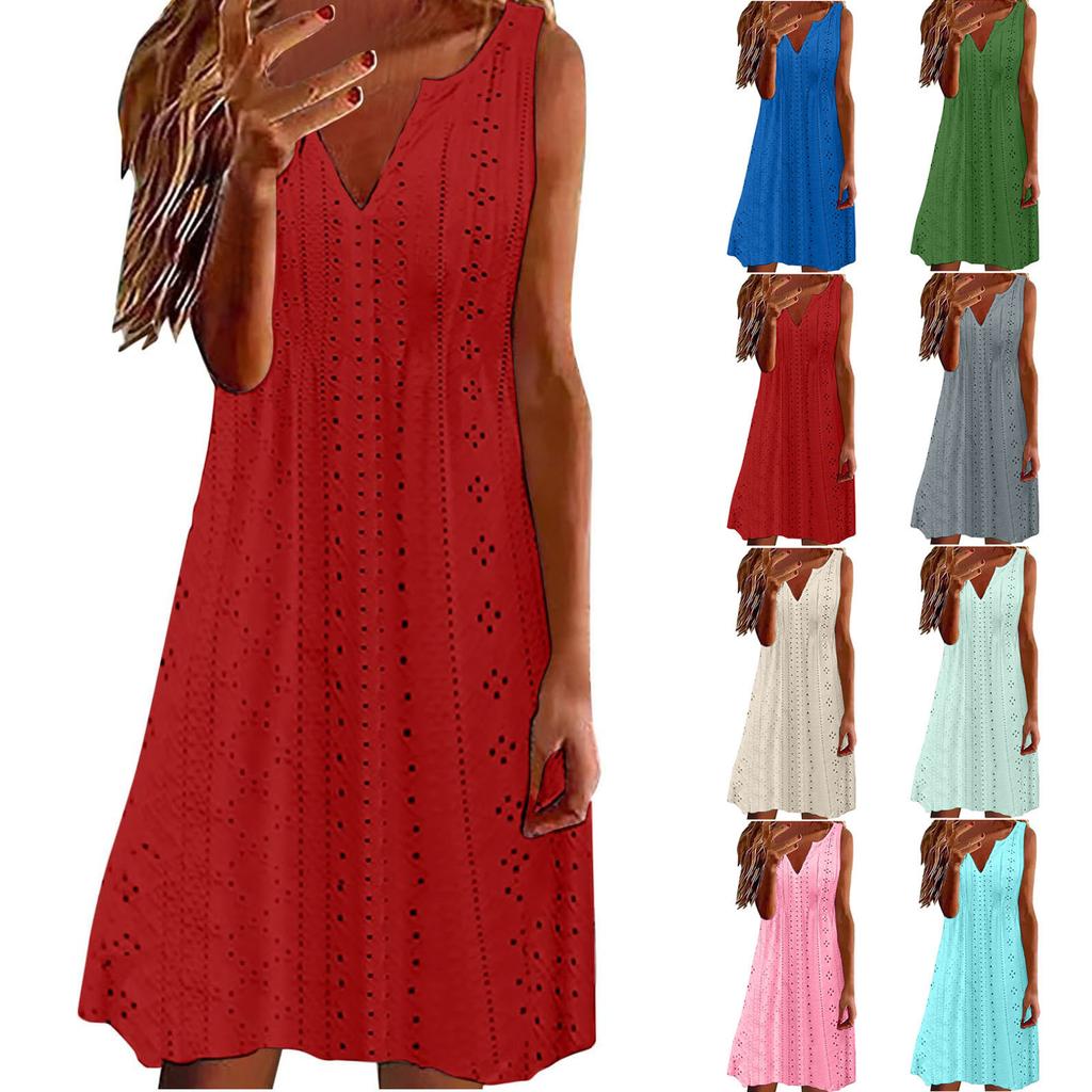 Women's Fashion Hollow Sleeveless V-Neck Loose Colour Dresses