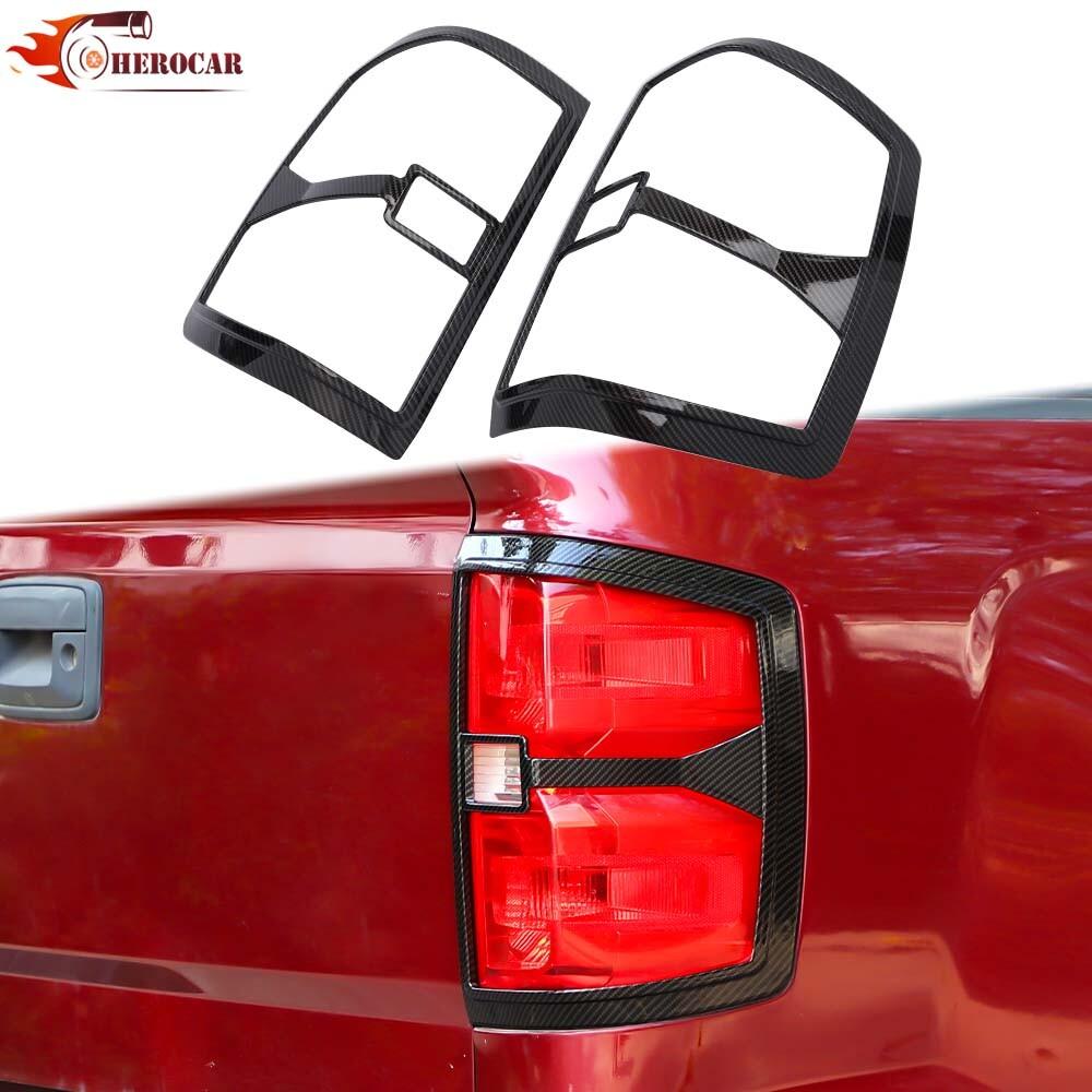 2PCS Carbon Fiber Tail Light Lamp Cover Bezel For Chevy Silverado 1500 2014-2018