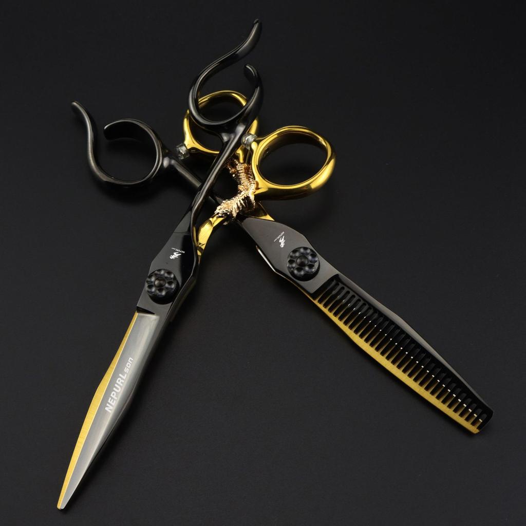Black 6.0 Inch Nimpson Black Steel Small Golden Tiger, Bearing Screw Hair Scissors, Hair Scissors, Tooth Scissors, Thin Scissors