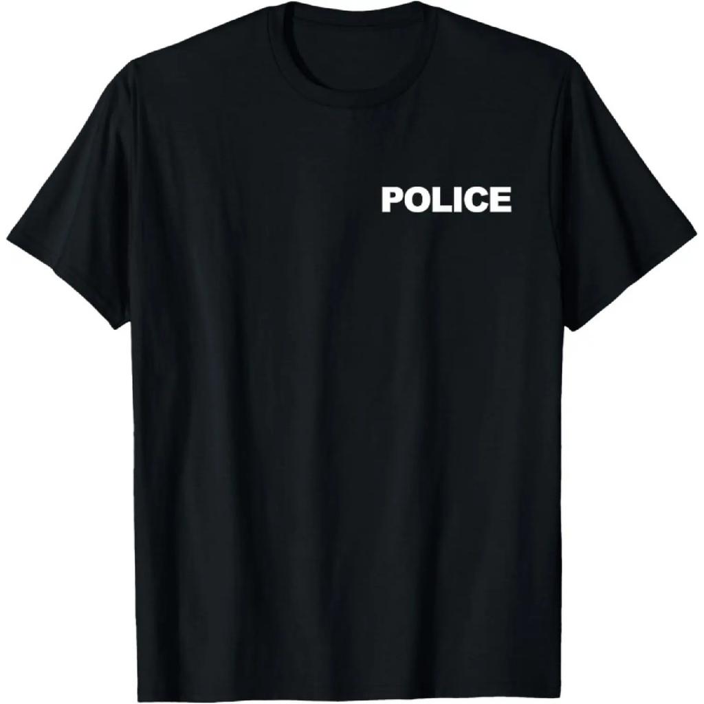 Policejní tričko s potiskem vpředu a vzadu, tričko s kulatým výstřihem