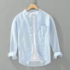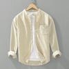 Japanese-Style Casual Cotton-Linen Stand-Collar Long-Sleeve Shirt for Men, Loose and Breathable Linen Top for Spring and Autumn